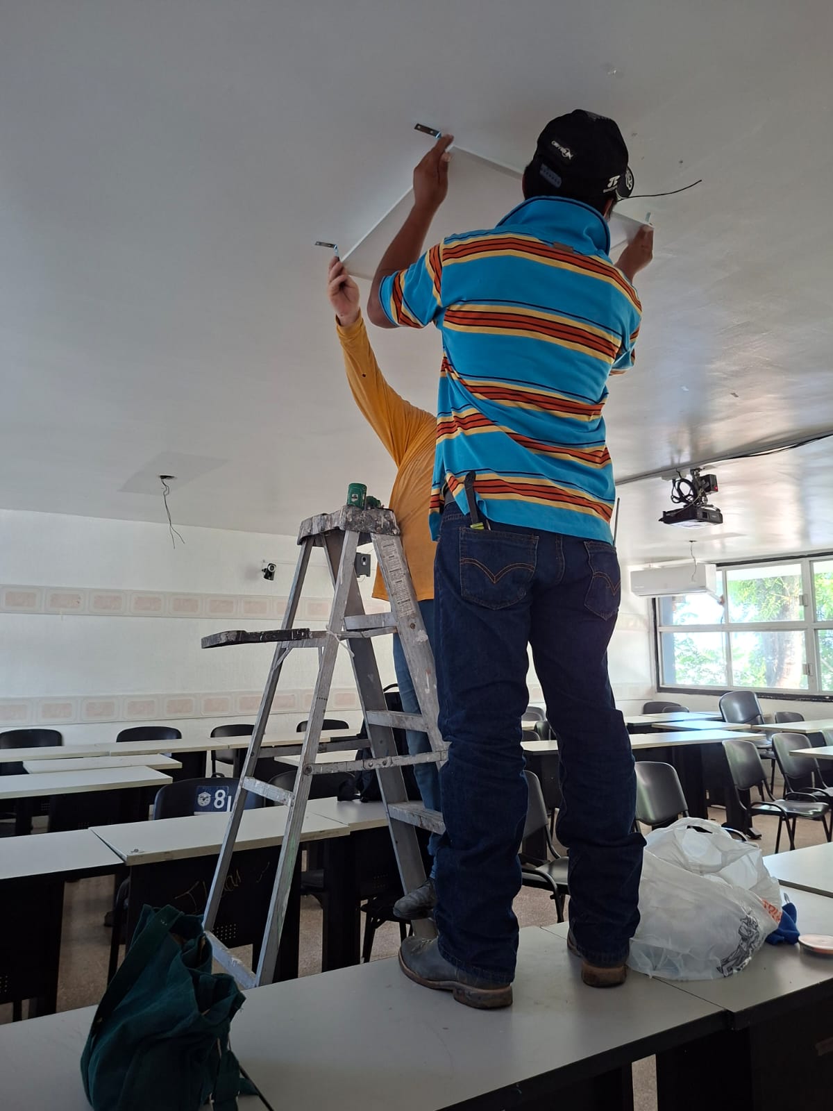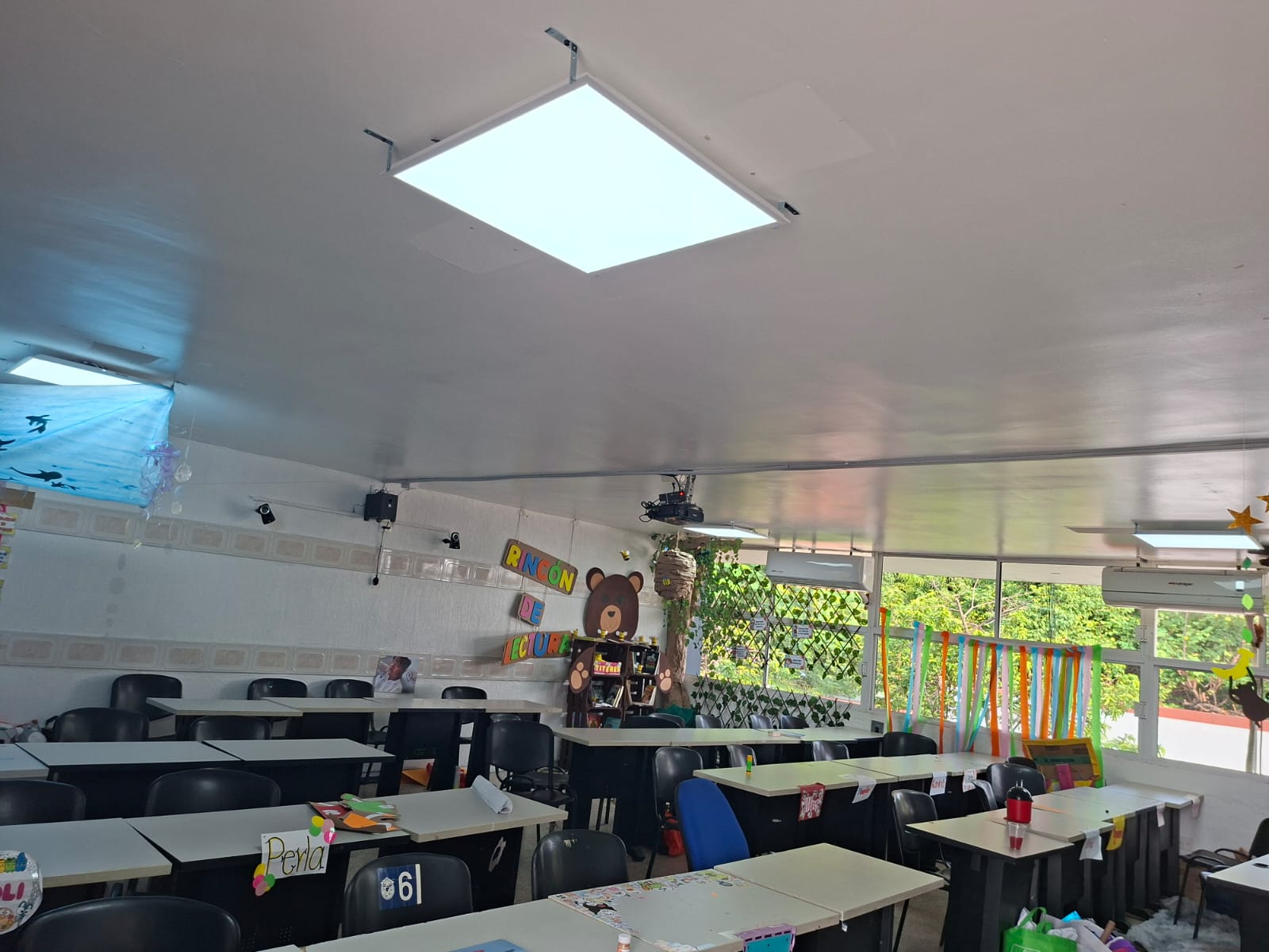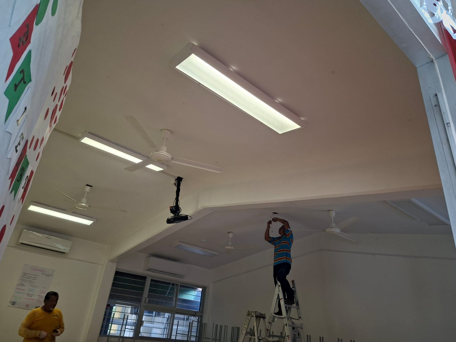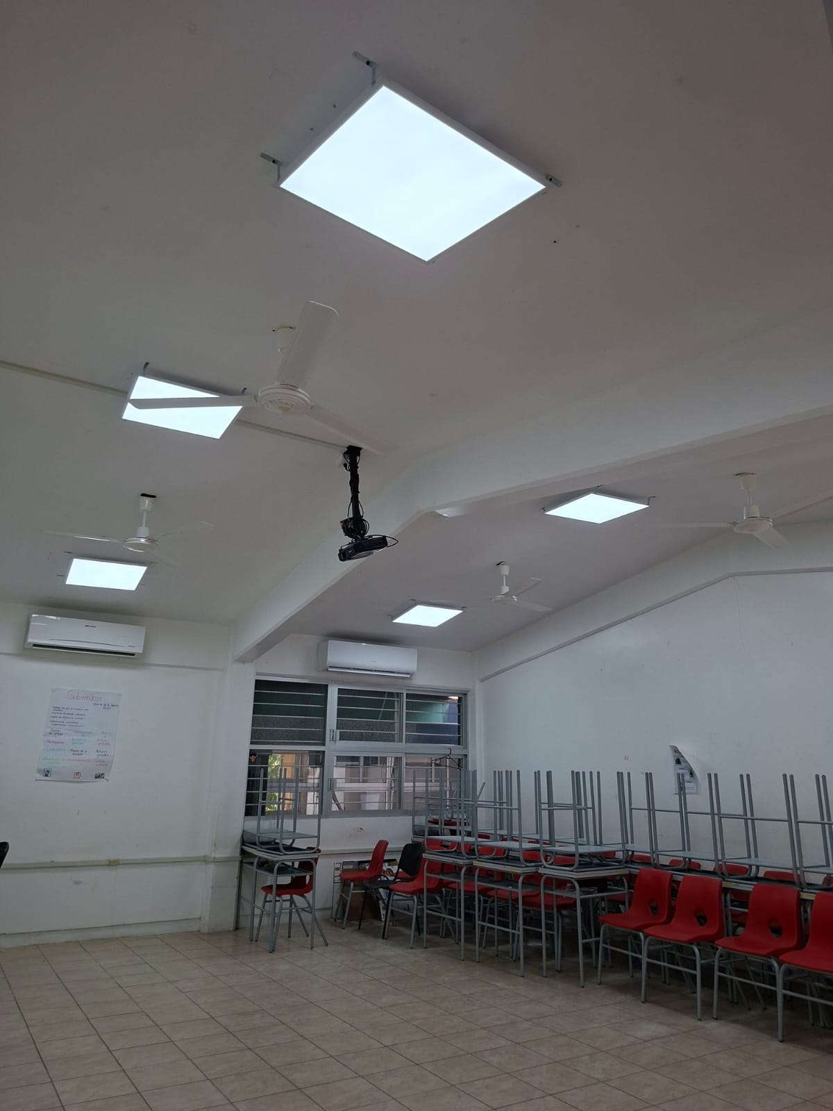 cambio de la luminaria en todas las aulas, colocación de reflectores en la